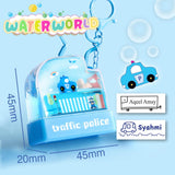 Cute floating cartoon pre-inked stamps from the Water World Stamp Collection. Up to 4 adorable designs and 6 ink colours to choose from. Comes together with a keychain!