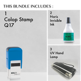 Stamp on surfaces and still not see the imprint with our invisible stamp series! This stamp impression will only be seen through a UV hand lamp