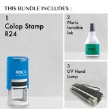 Stamp on surfaces and still not see the imprint with our invisible stamp series! This stamp impression will only be seen through a UV hand lamp